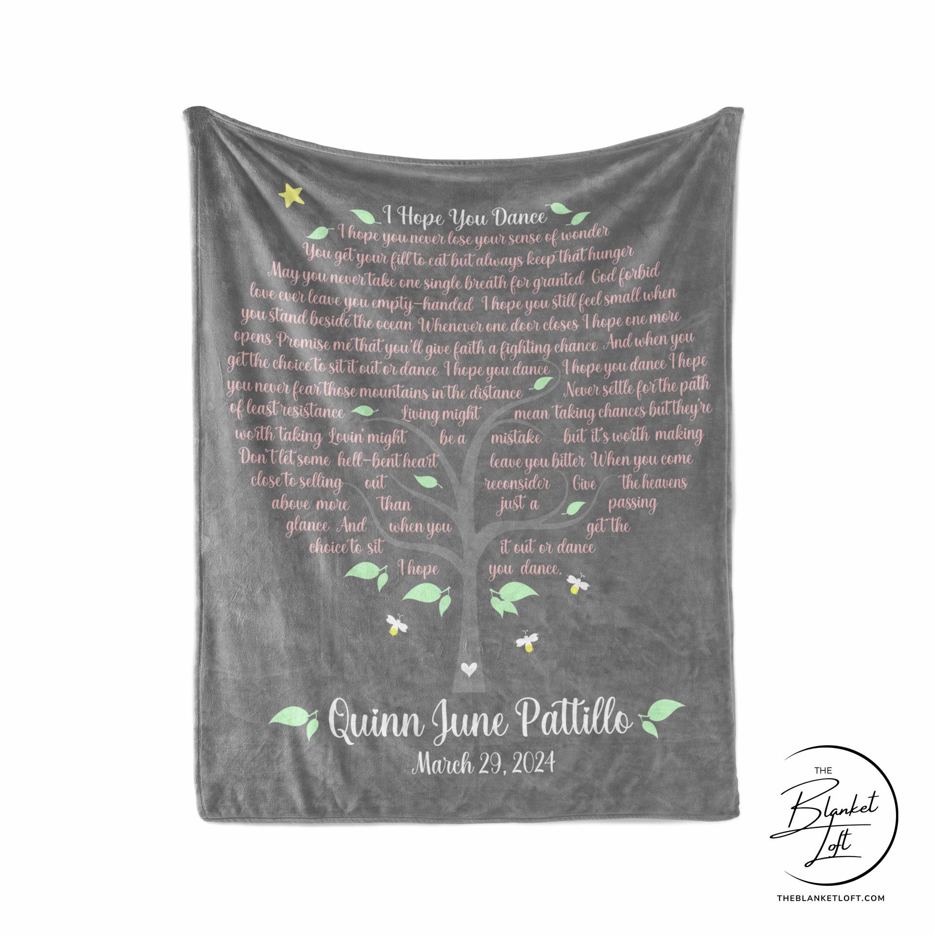 This custom music blanket has the lyrics to the song of your choice in the shape of a tree
