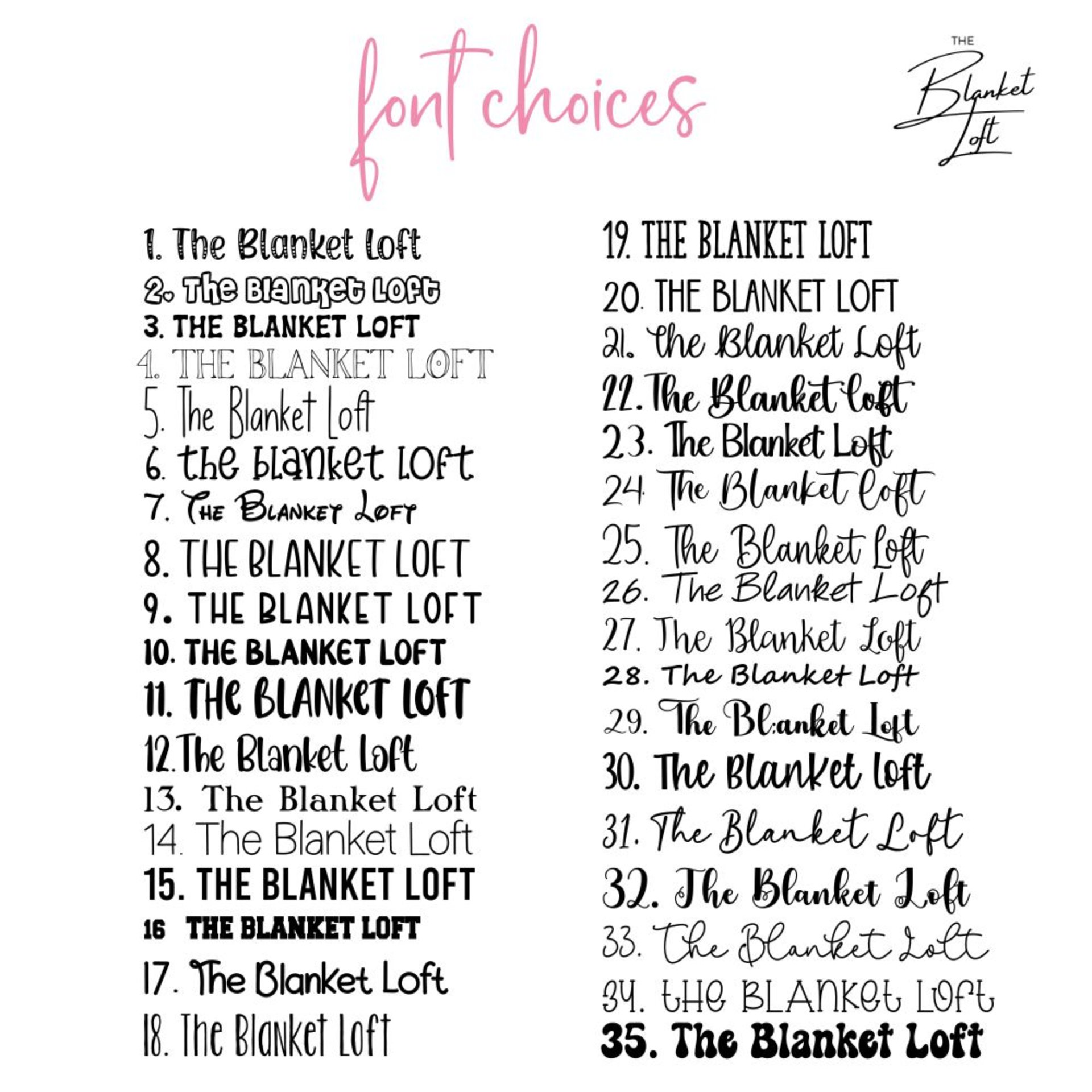 Customize your personalized blanket by adding your child's name and picking the colors and fonts that you want.
