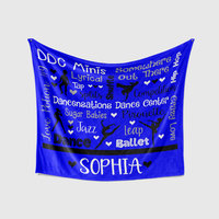 Dancensations Dance Center Blanket $65.00 Other Notes Any other info that you want me to know to design your blanket or beach towel Quantity Personalize your blanket by adding the name, team level and any words that you want to substitue. 50x60 Throw size Minky Fleece
