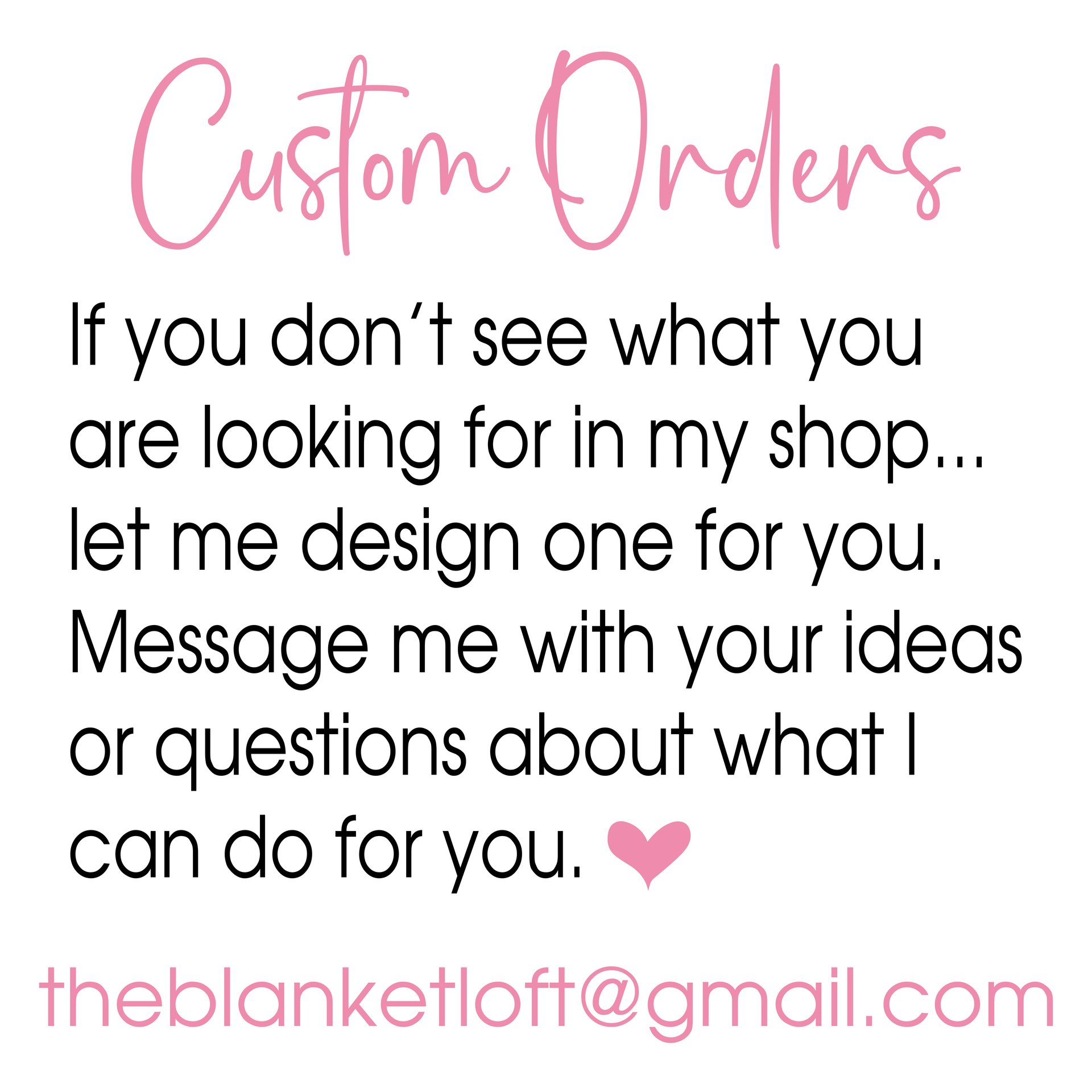 3. Type in the name, fonts, colors and anything else that you want me to know to design your blanket