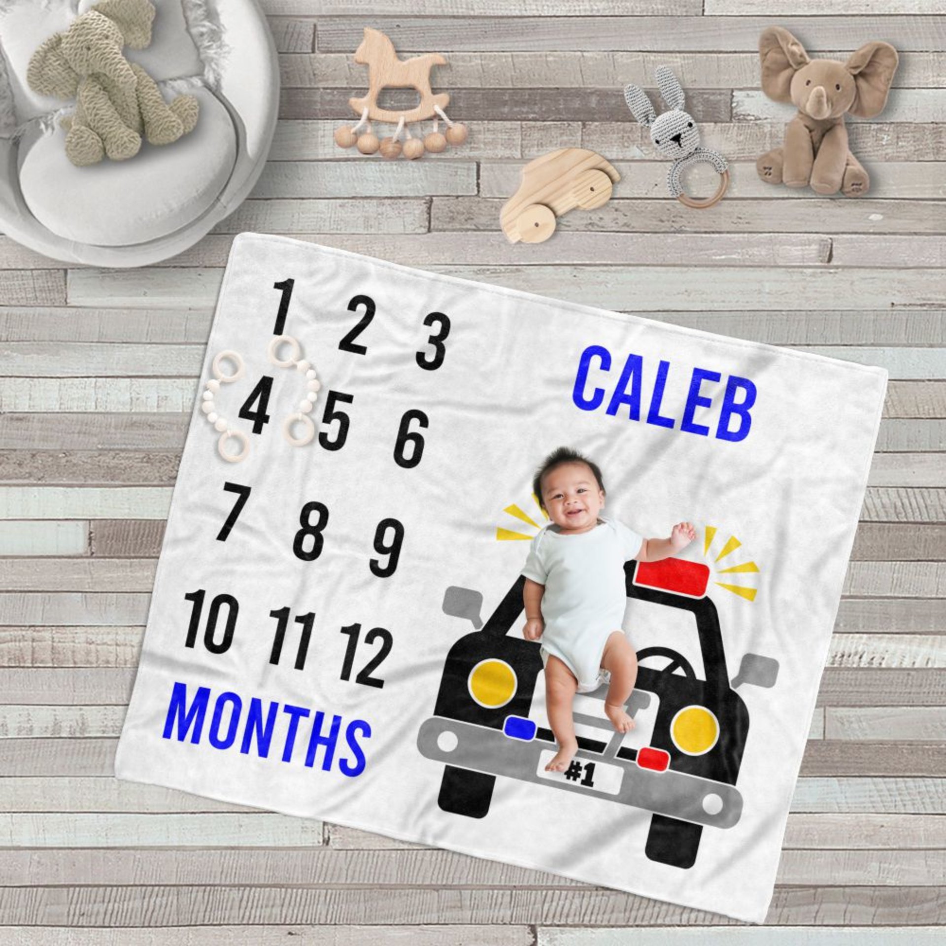 Capture every milestone with our adorable Police Car Milestone Blanket, perfect for your little one's journey. Crafted with super soft fabric, this blanket features a charming police car design to add a touch of whimsy to your baby's photoshoots.